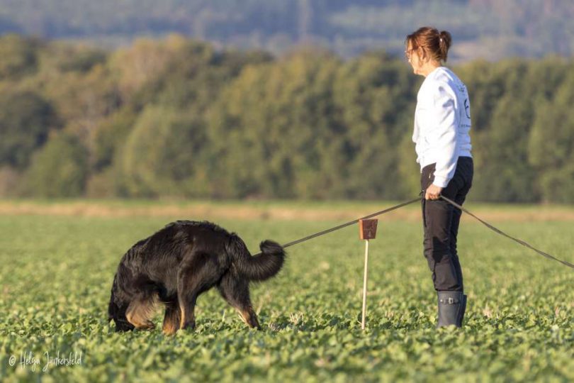 Chenna hat gleich morgens in der Fährte gezeigt, was sie konnte und 93 Punkte geholt. In der Unterordnung zeigte sie alle Übungen sehr gut, beim perfekten Steh gab es spontanen Applaus. Insgesamt war sie nicht so spritzig wie sonst. Kein Wunder, hatte doch die Tierärztin bei der Eingangsuntersuchung einen sehr niedrigen Puls festgestellt. Der war begründet in ihrem Zyklus, es war quasi Geburtstermin. So ist das bei den Hündinnen nun mal. 89 Punkte trotzdem. Im Schutzdienst ließ sie ein Versteck aus, schade und konnte sich im ersten Teil nicht so wie gewohnt präsentieren, was aber nicht nur ihr anzulasten war. Im zweiten Teil konnte sie ihr Können dann mit Heiko Drechsler vorführen und erhielt 76 Punkte und einen augeprägten TSB escheinigt. 257 Punkte ! Bestanden! Alles gut!