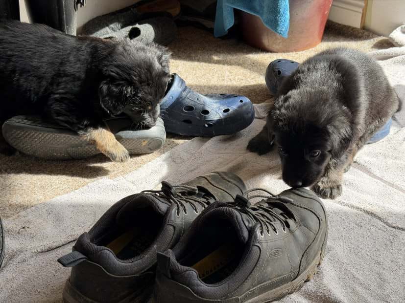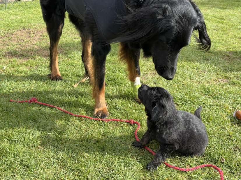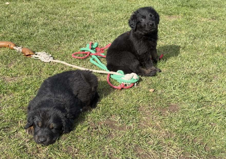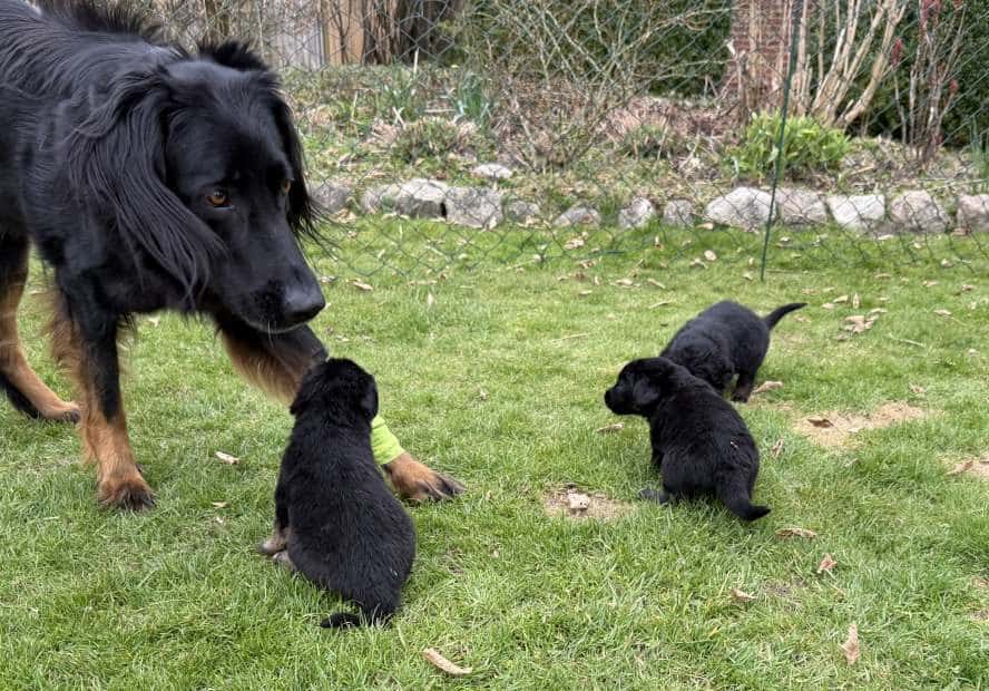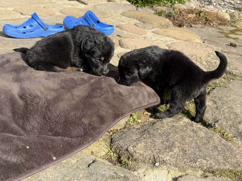 So spannend war der erste Ausflug ins Freie und dann, als das Wetter endlich etwas wärmer war und der Wind nicht mehr drohte uns weg zu pusten, ging es auch noch auf den großen Rasen. Mega viel zu Schnuppern und riesig Platz zum Rennen. Wir haben neugierig alles ausprobiert und Mama hat aufgepasst und den großen Raubvogel, der über uns kreiste, vertrieben.