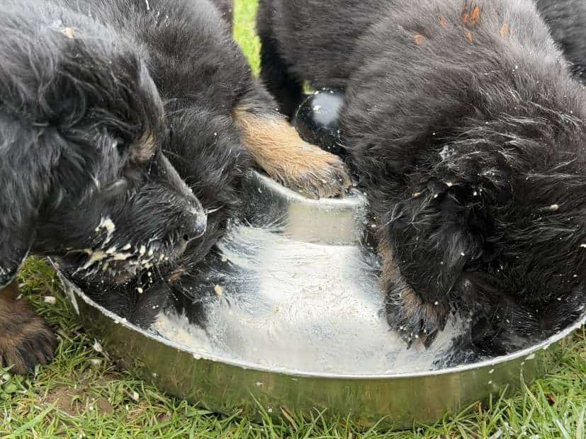 Also es sind immer die anderen, die so vehement fressen, dass man eingesaut wird. Ich selber fresse am liebsten sehr gemütlich und natürlich sauber. Das kann ich in diesem Rudel leider nicht durchsetzen. Na, zwei Wochen noch, dann ziehe ich aus. Schöne Grüße Euer Ivar vom Pohlsee